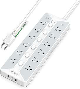 電源タップ スイッチ付き 延長コード 2m usb コンセント TESSAN 12個AC口 3個USBポート テーブルタップ 壁掛け マルチタップ oaタップ 幅広コンセント 蛸足コンセント タコ足配線 節電 タップ 3ピン 省エネ 雷ガード 2ピン 3ピンプラグ対応