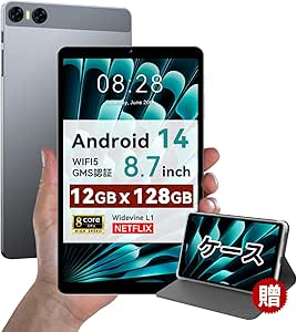 【専用ケースプレゼント】タブレット 8インチ android 14 アンドロイド WIFI 12GB+128GB+1TB TF拡張 Widevine L1 8コアCPU 5000mAh GMS BT5.0 GPS OTG 1340*800 IPS画面 無線投影 顔認識 児童守護 P08 tablet
