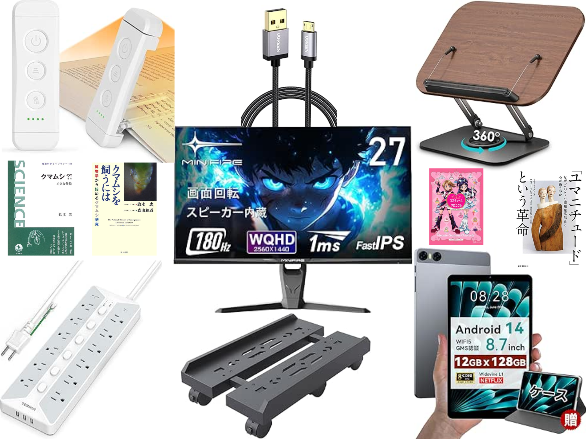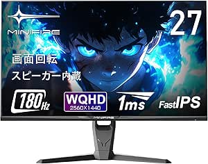 Minifire 27インチ ゲーミングモニター ゲーミング ディスプレイ WQHD (2560×1440) Fast IPS 180Hz 1ms 120% sRGB 320cd/m² 高さ調節 スイーベル HDR10 FreeSync スピーカー内蔵 DP HDMI USB 3.0-A USB3.0-Bポート (DP ケーブル付属)